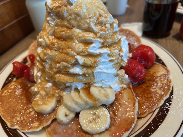 テーブルについてメニューを見るときもワクワクしますが、ふわふわの生クリームとパンケーキにメープルシロップでビシャビシャにしてしまう瞬間はもう興奮が止まりません!ドンストッミーナウ!!