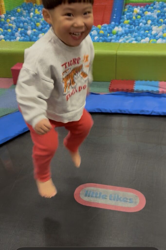 パーク内にはトランポリン、ボールプール(ボールの量がすごい)、おままごとセット、ドレミファマットがあり、全てをローテーションしながら元気に遊んでいました。ボールプールではボールに身体がすっぽり埋まってしまうくらいの量があり大人も楽しめる空間でした。