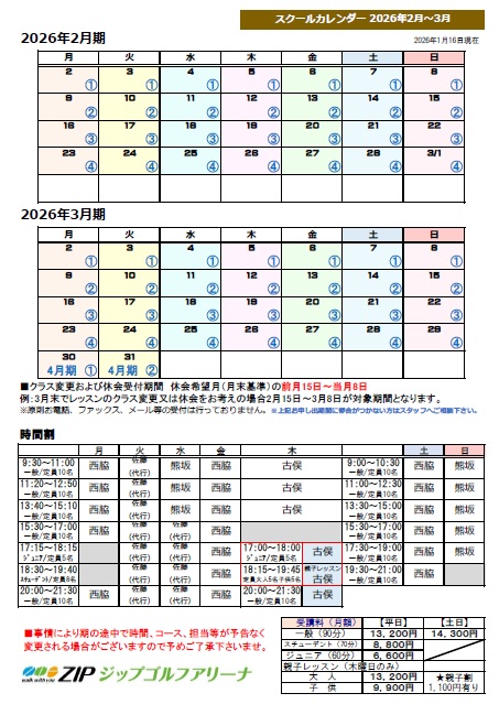 ジップゴルフアリーナのホームページに入り【スクール生専用ページ】をクリック