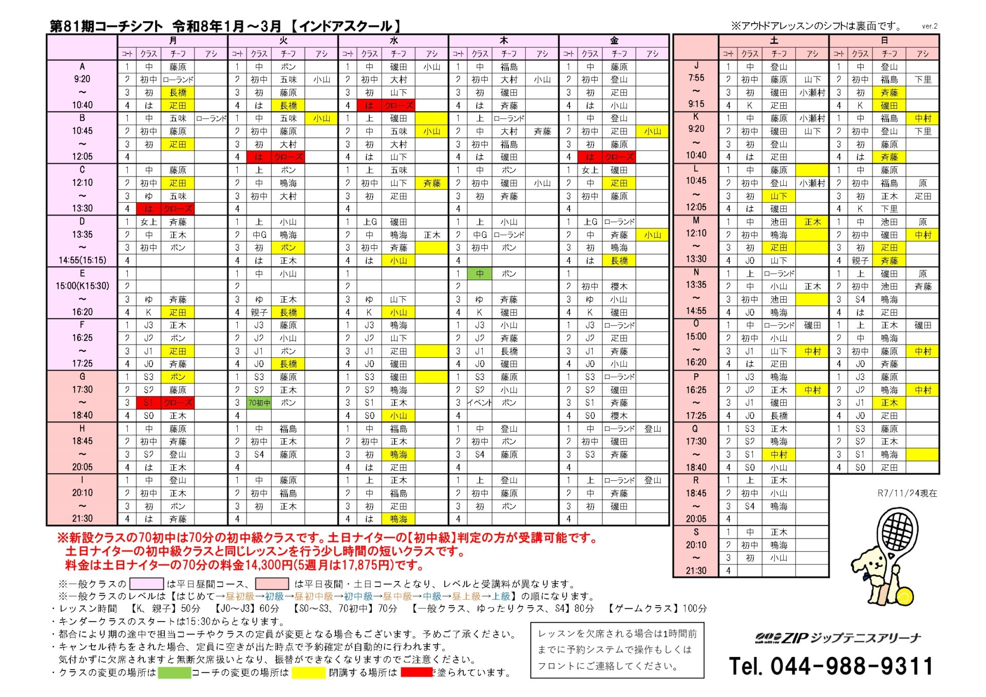 | E | 15:30~16:20(月・水・木・金) | キンダー、親子クラス |