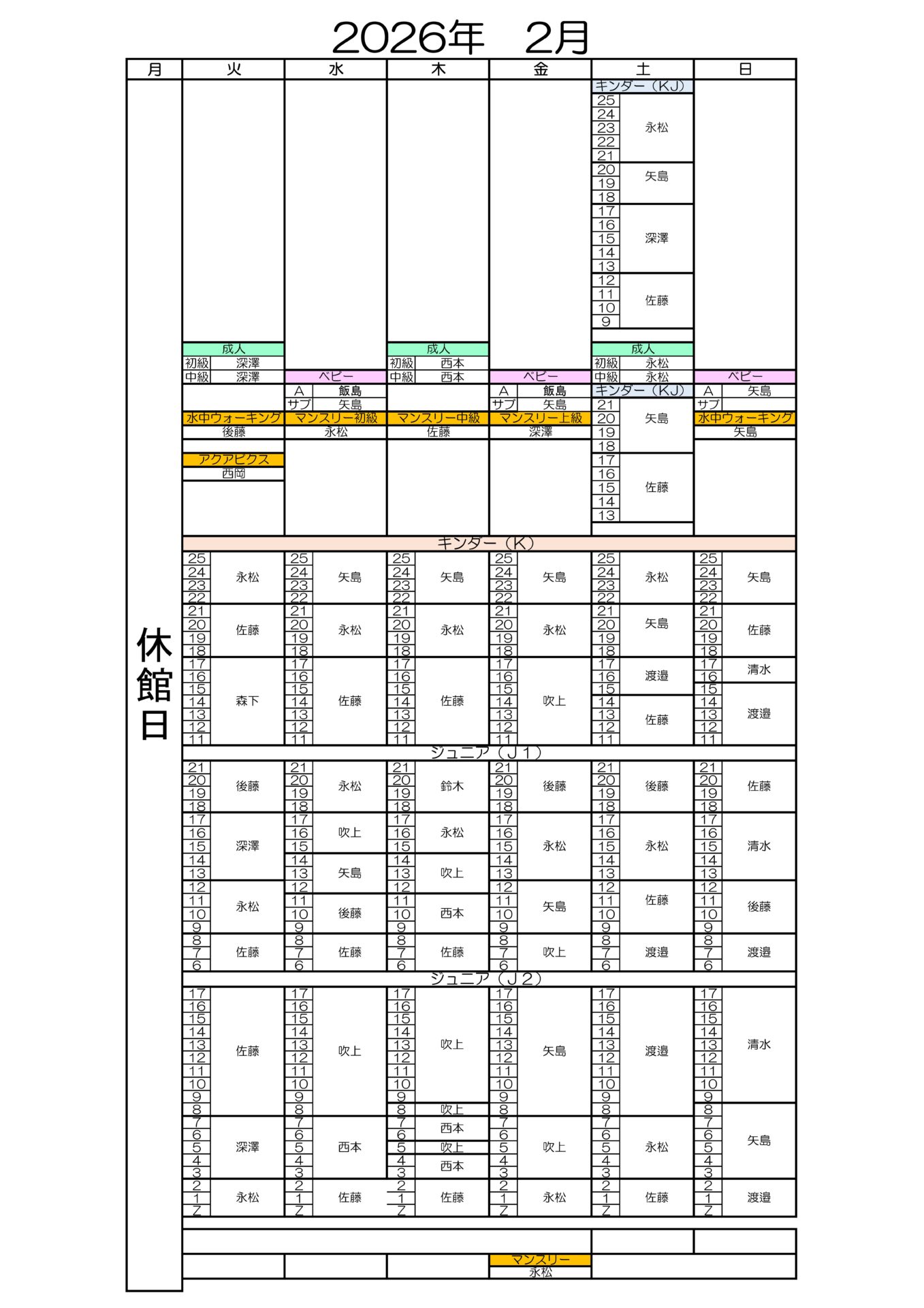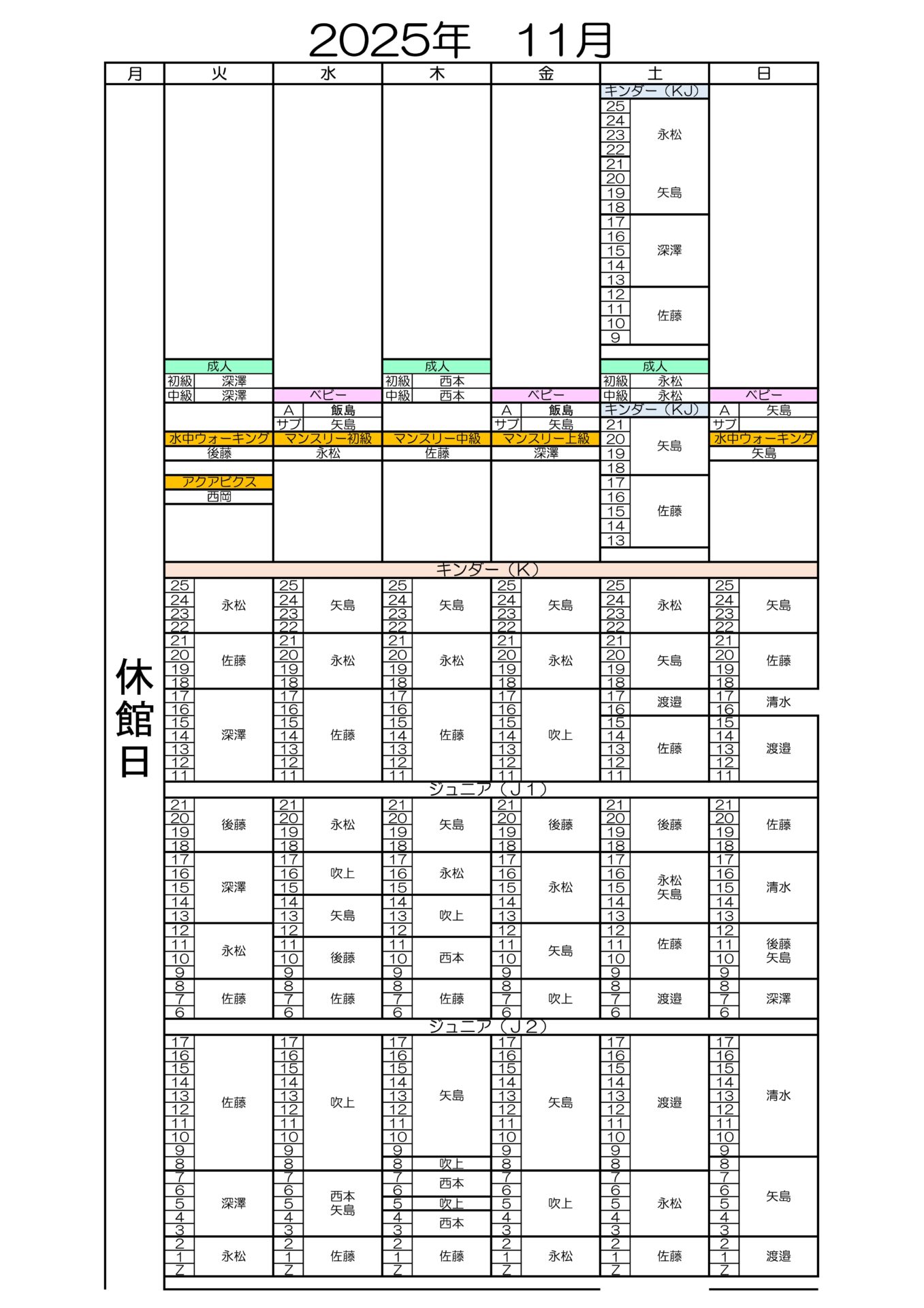 ジュニアコース(キンダー:K/ジュニア:J/アドバンス:A)