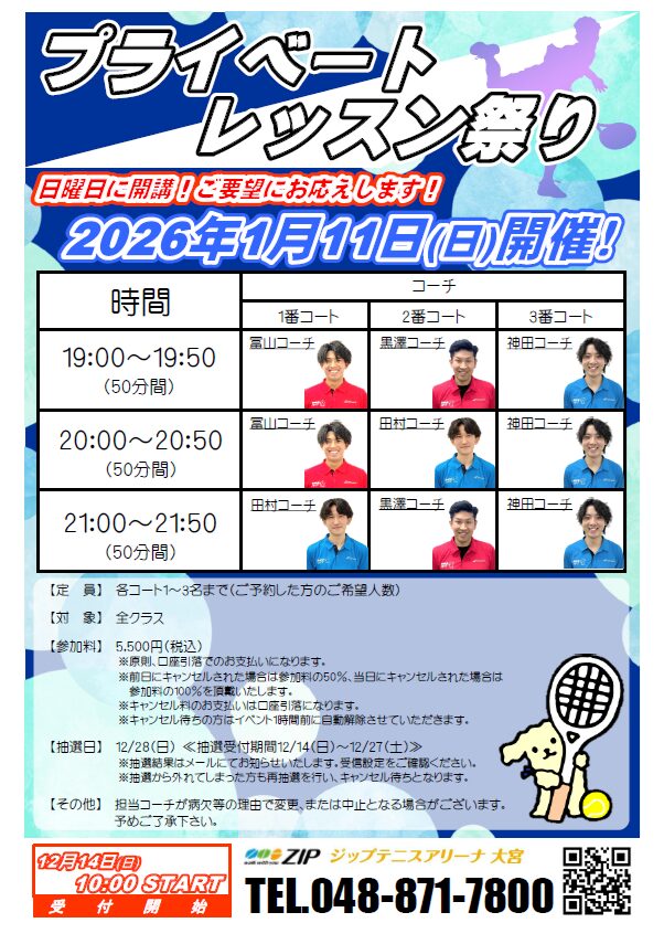 2026年1月11日(日)「プライベートレッスン祭り」を開催いたします。